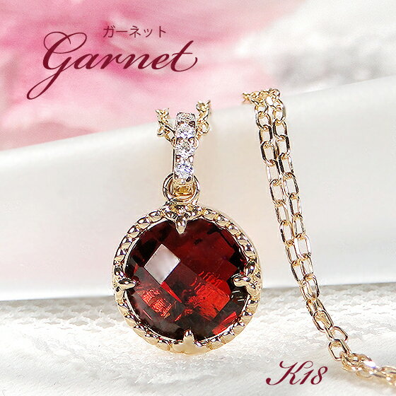 18金ネックレスガーネットダイヤモ...