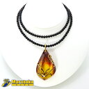 【中古】大粒琥珀ネックレスブラックカルセドニ...