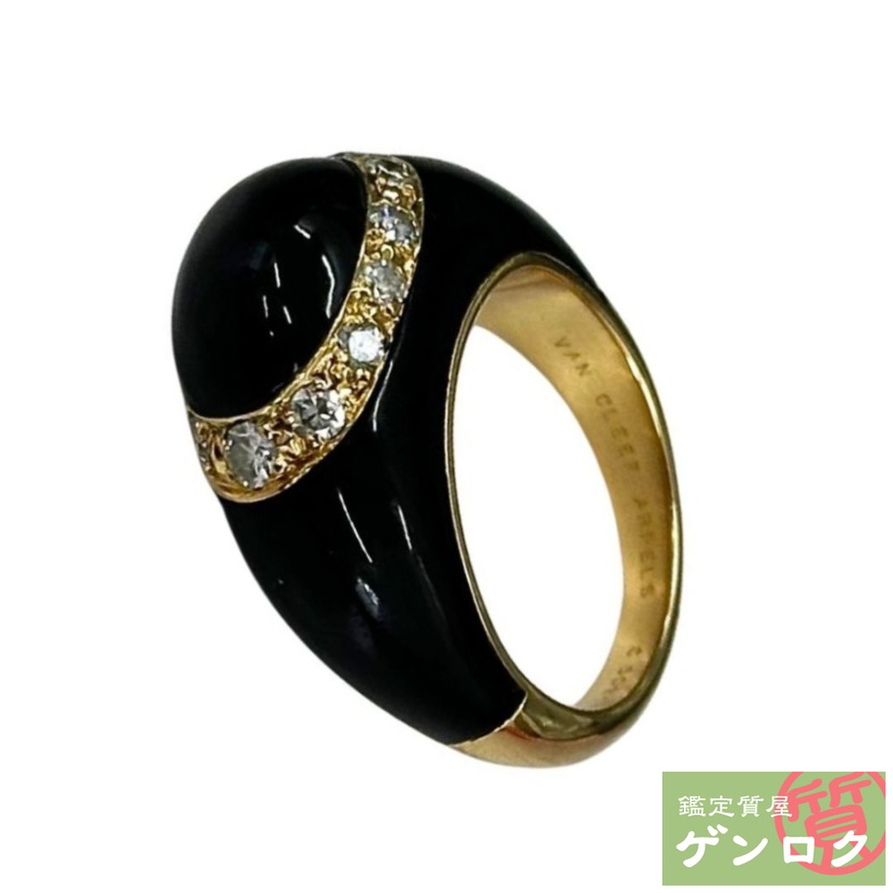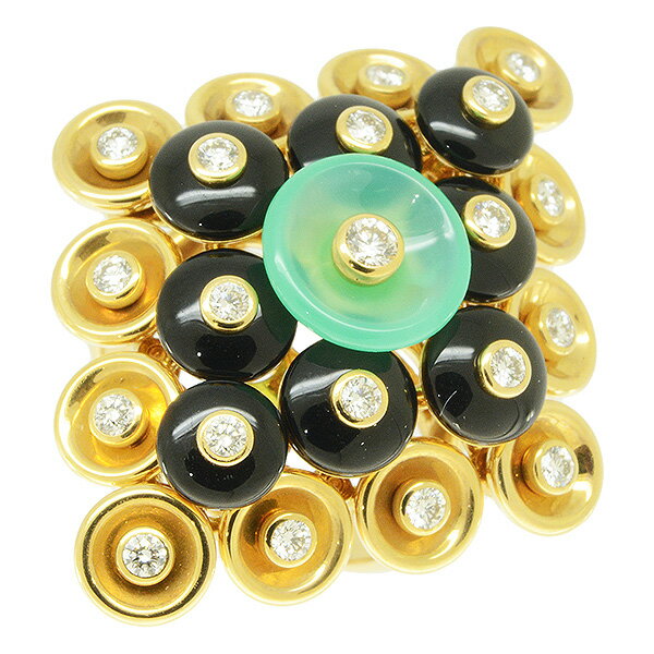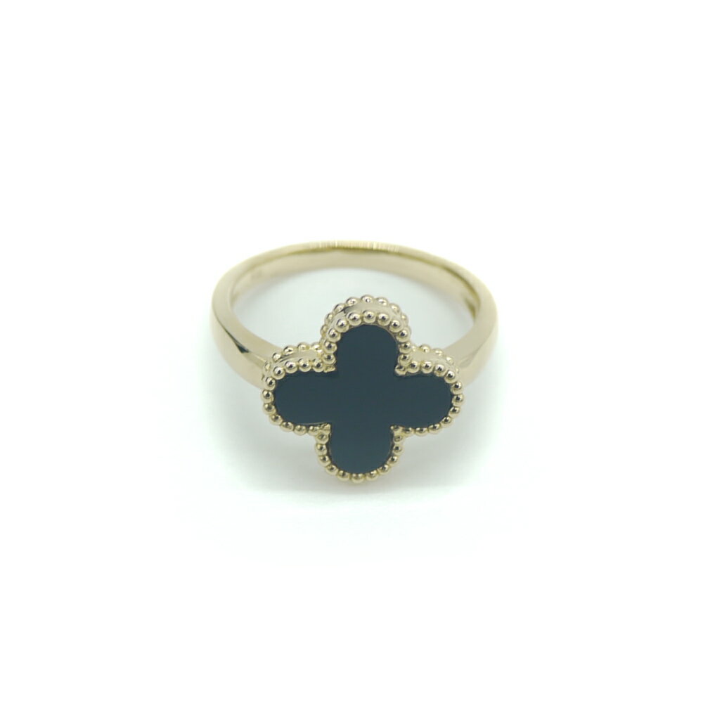 【中古】 K18オニキスクローバーデザインリ...