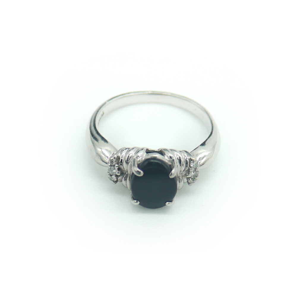 【中古】PT900スクエアダイヤモンドオニキ...