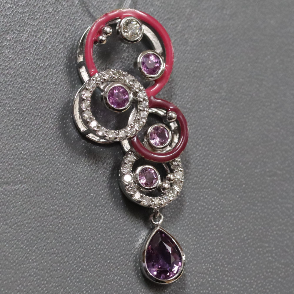 【中古】 K18WGパープルサファイアダイヤ...