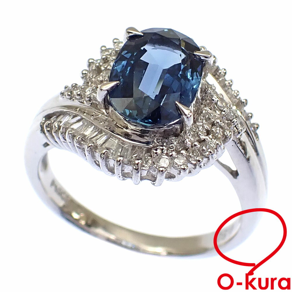 【中古】Pt900プラチナサファイアダイヤリ...