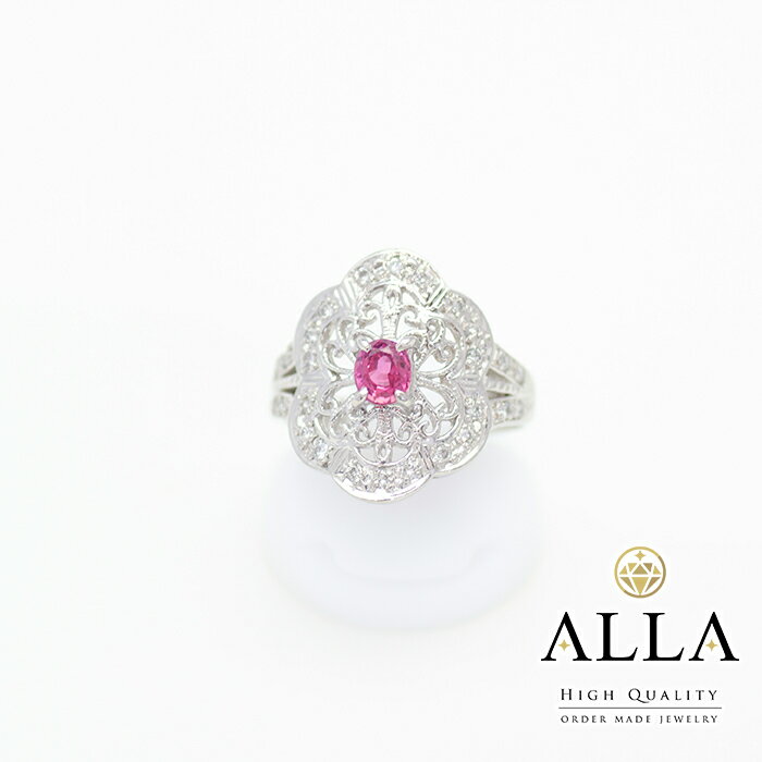 【中古】 ピンクサファイアリング鑑別書付Pt...