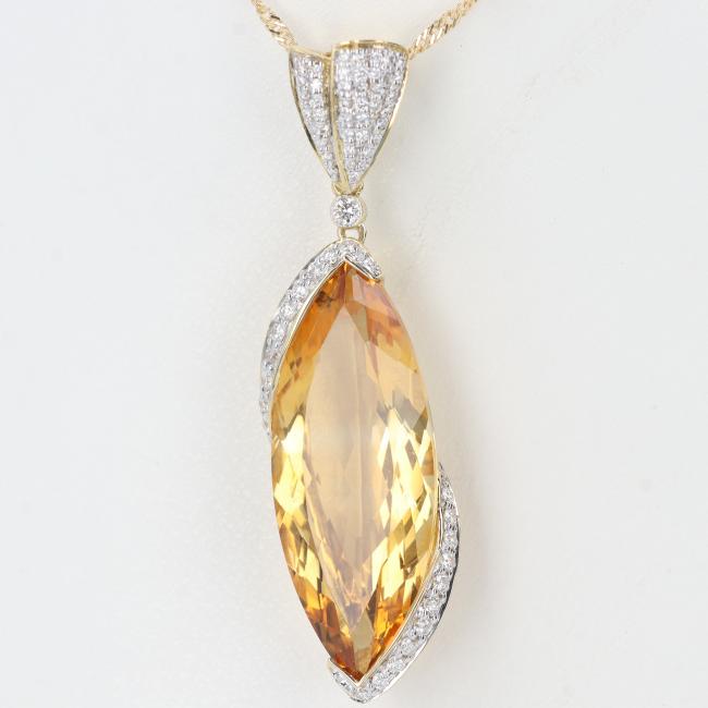 【中古】K18YGシトリン付ダイヤモンドネッ...