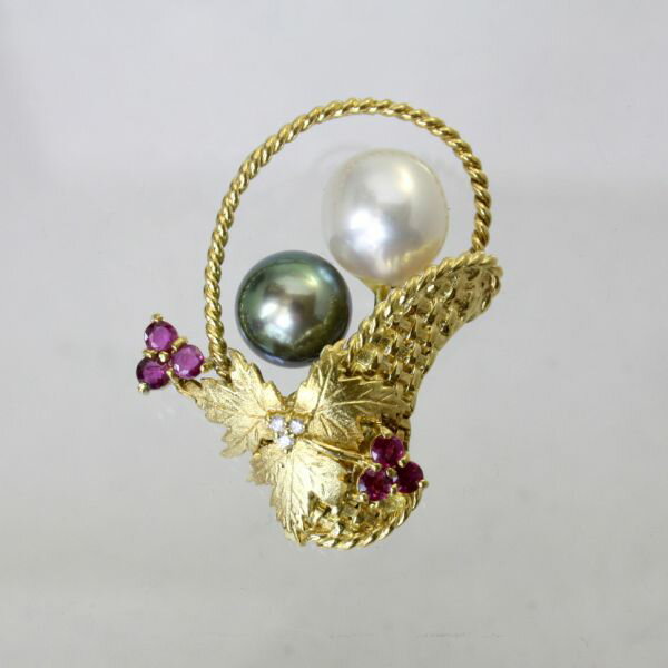 【中古】 18金真珠ルビー&ダイヤペンダント