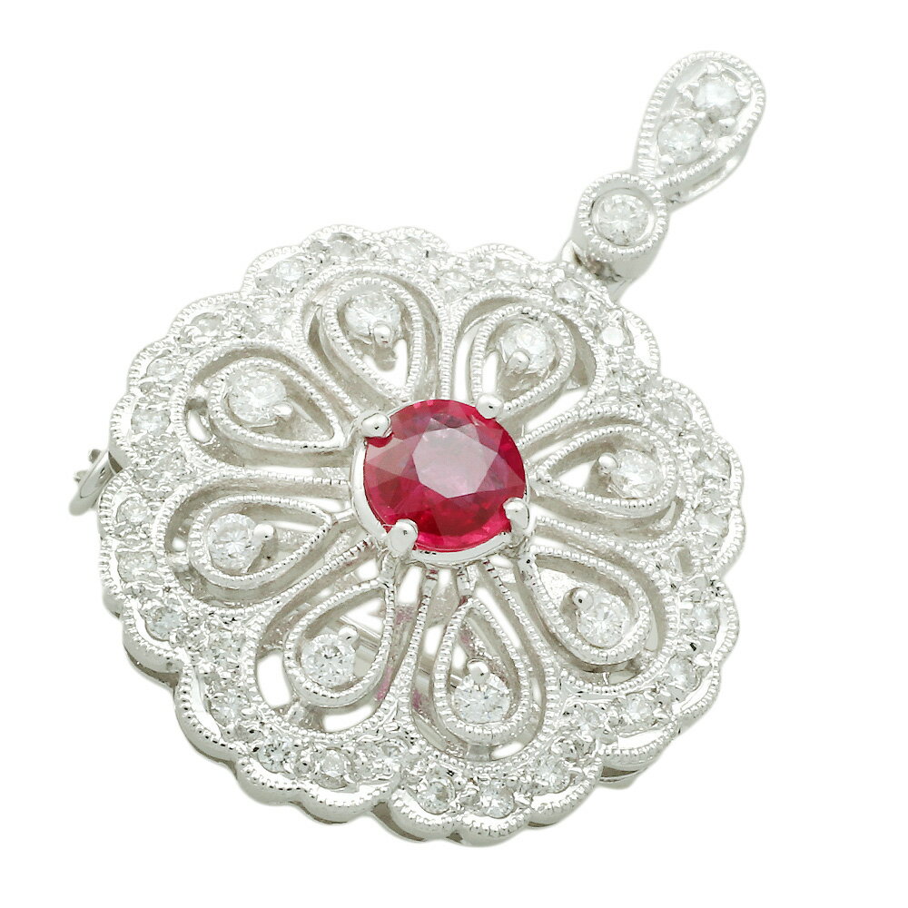 【中古】 Pt850ルビーダイヤモンドペンダ...