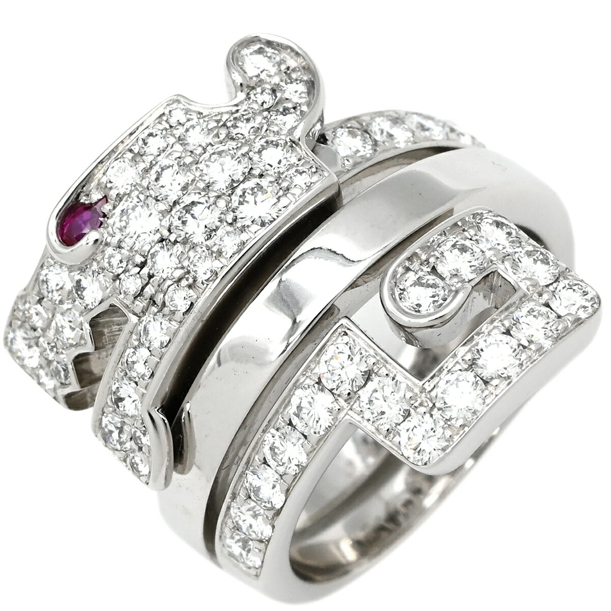 【中古】750WG★リングルビー◇ダイヤ●9...